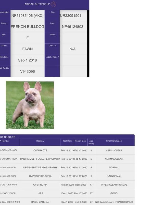 Both Benny and Abby are four panel health tested clear (DM, HUU, JHC and CMR1) AND both are Cysturnia 3 clear, which is a big deal if you're looking to add quality and health to your program, including important OFA certifications. Combined with Benny AND Abby's extensive health testing including OFA certifications for hips (EXCELLENT and GOOD), spine, trachea, heart, elbows and knees, these puppies are set up for success!